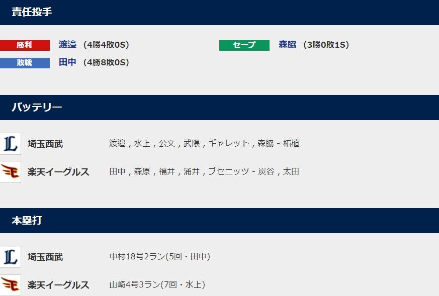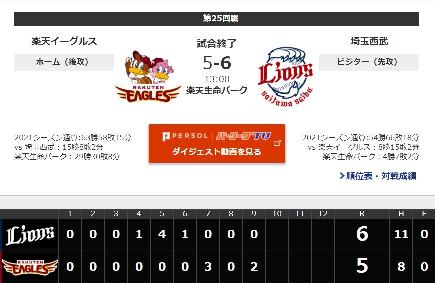 【西武6-5楽天】