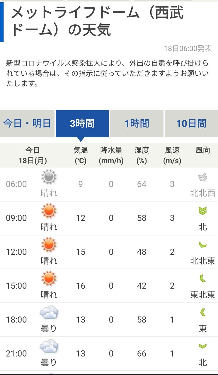 【悲報】今日のメットライフドーム、予想気温13℃