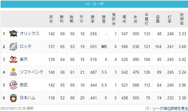 <パリーグ順位表>