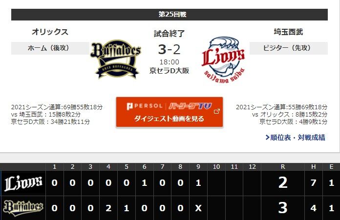 【西武2-3オリックス】