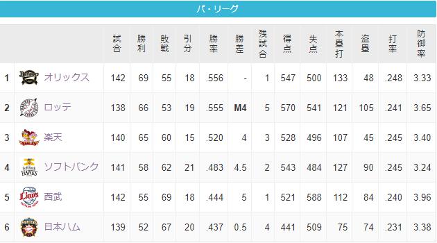 パリーグの熾烈な最下位争い、最後まで分からなくなる