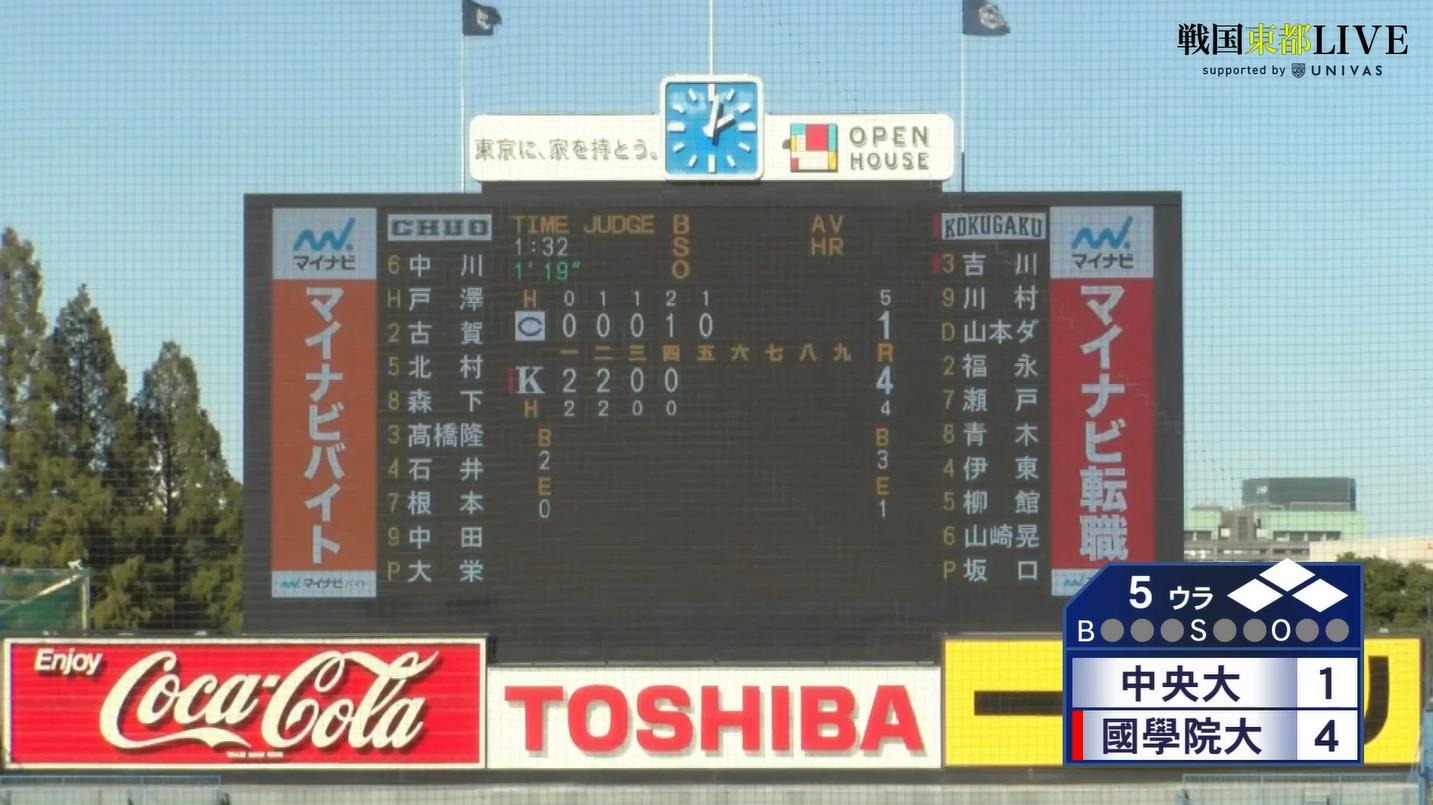国学院が初回福永瀬戸の連打で2点先制した模様