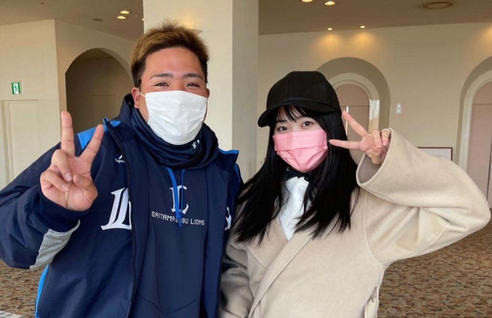 本田望結が西武山川と遭遇 「ほたぴー、キャンプ頑張ってね」