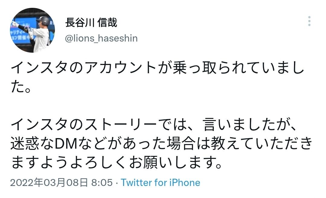 【悲報】西武・長谷川信哉のインスタ乗っ取り犯、ファンを呼び出し生ハメしてしまうwwwwwwww