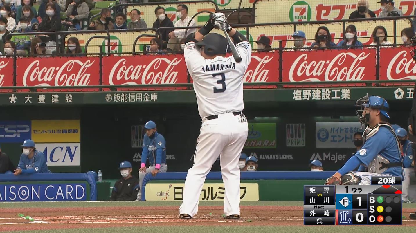 西武山川、プリケツ打法で同点打!