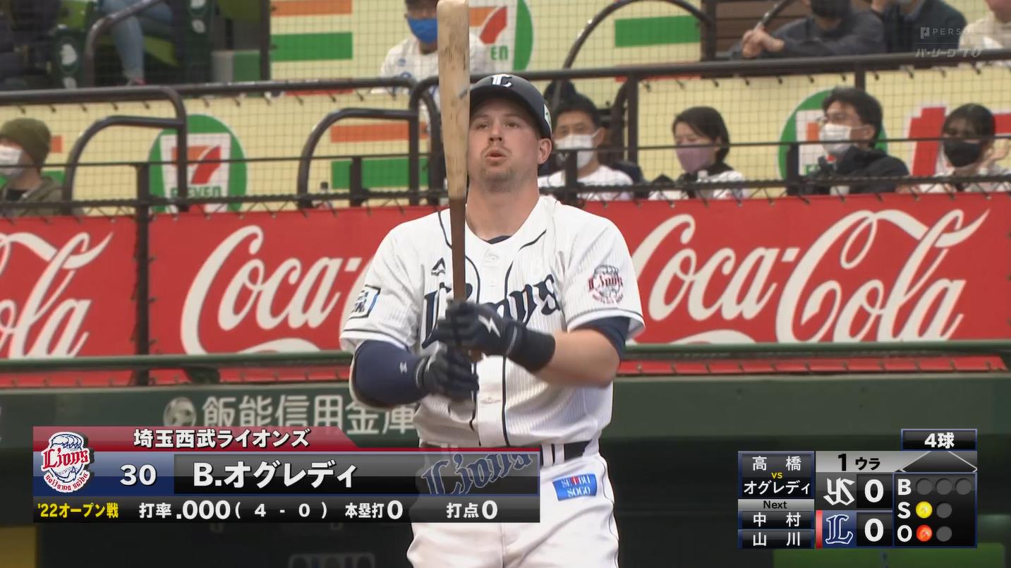西武オグレディ、オープン戦初ヒット!
