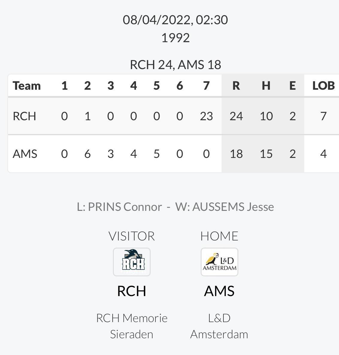 新加入先発のアンジェラが6回を2安打9奪三振1失点、打線もエンゲルハルトのホームランなどで爆発し18-1と大量リードで迎えた7回、リリーフのブレークが5連続四球。その後の投手もめった打ちをくらい、なんと17点差をひっくり返され一挙24失点