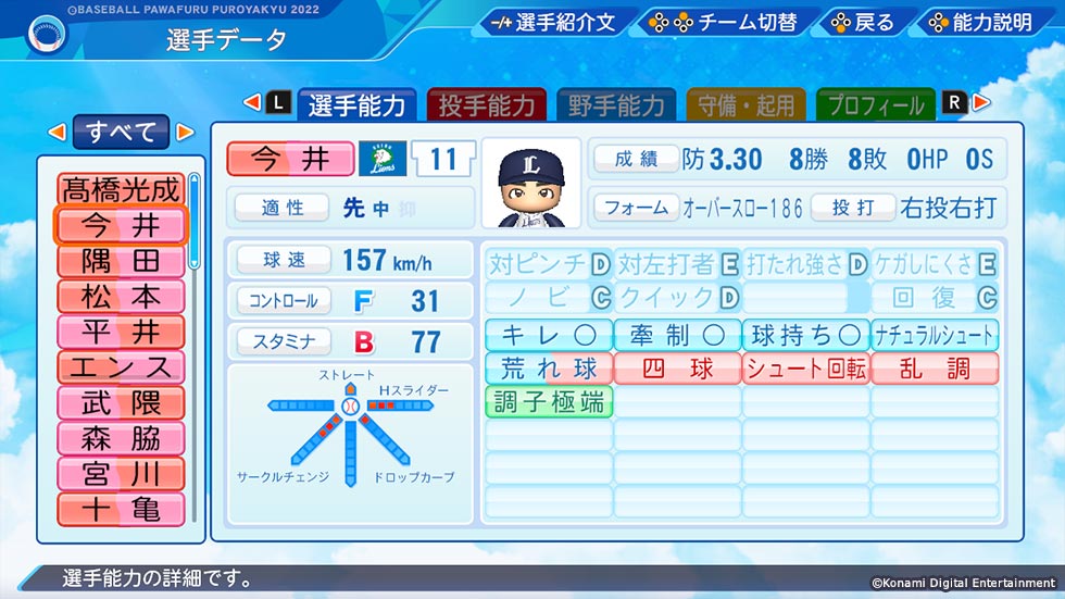 【朗報】パワプロ2022の今井達也、ロマンにあふれてる