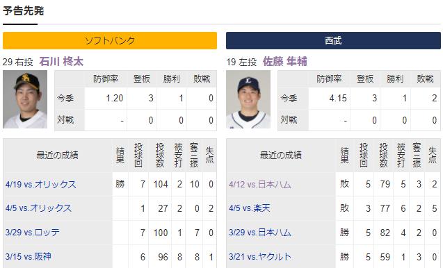 4/26(火)の予告先発