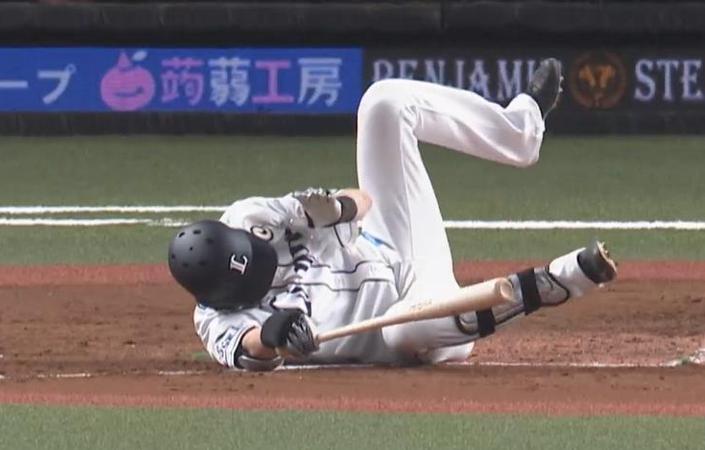 西武源田、自打球で負傷交代