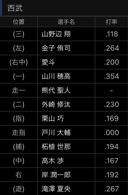 【悲報】現在の西武打線…