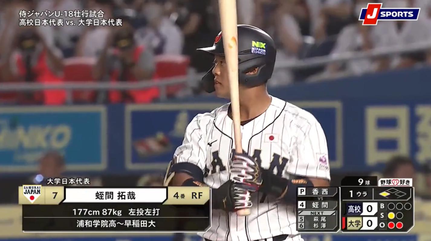 大学代表4番の蛭間拓哉さん、評価爆上げ!