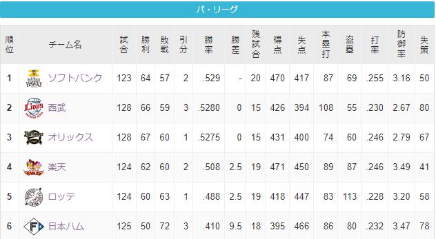 西武SBオリ楽天ロッテ ←この中でガチで優勝しそうな球団