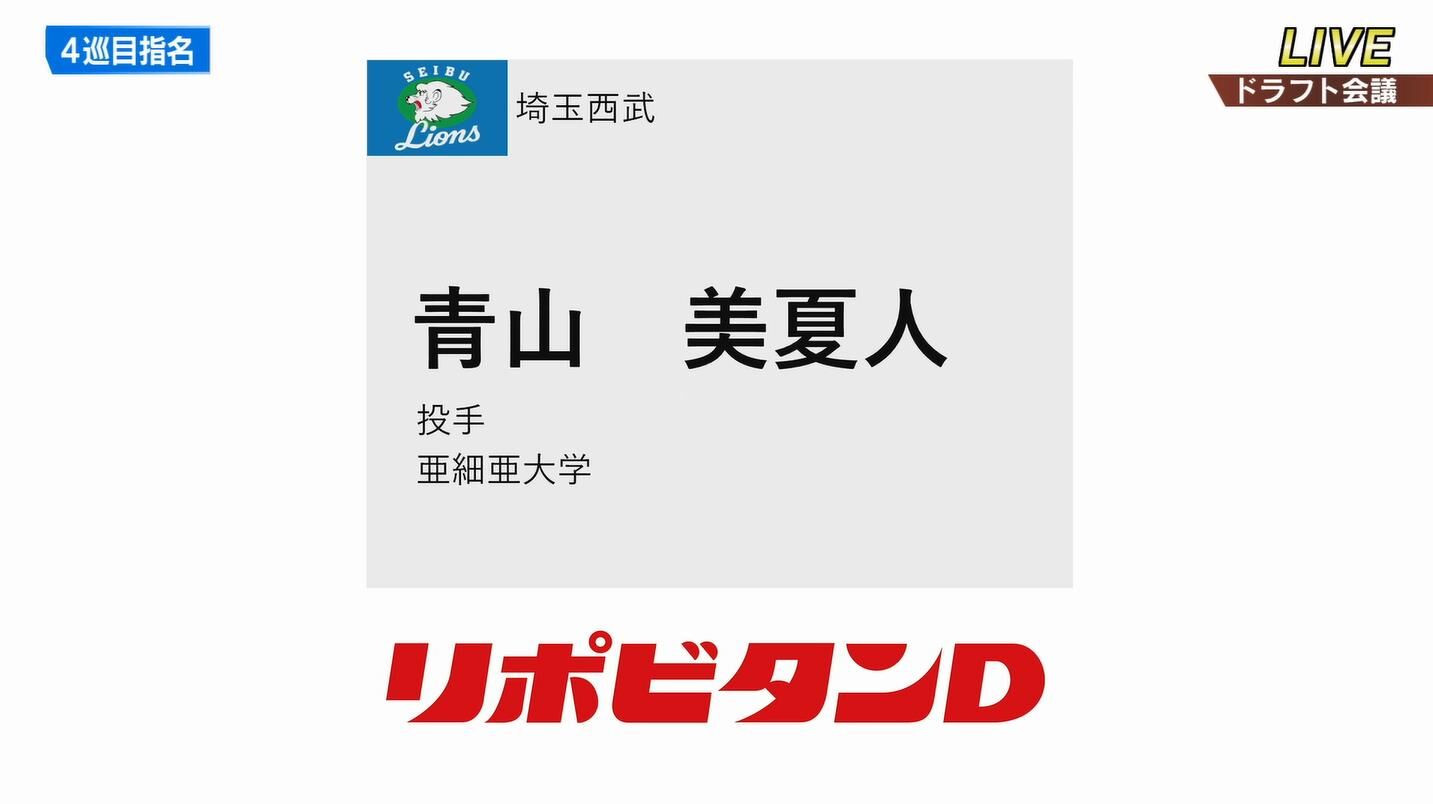 西武ドラフト4位は青山美夏人「多彩な変化球を操る日本代表右腕」