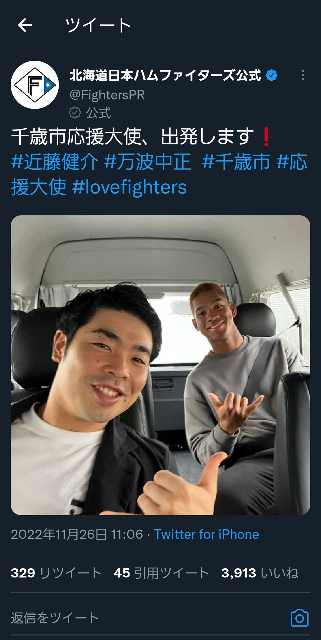 — 北海道日本ハムファイターズ公式 (@FightersPR) November 26, 2022