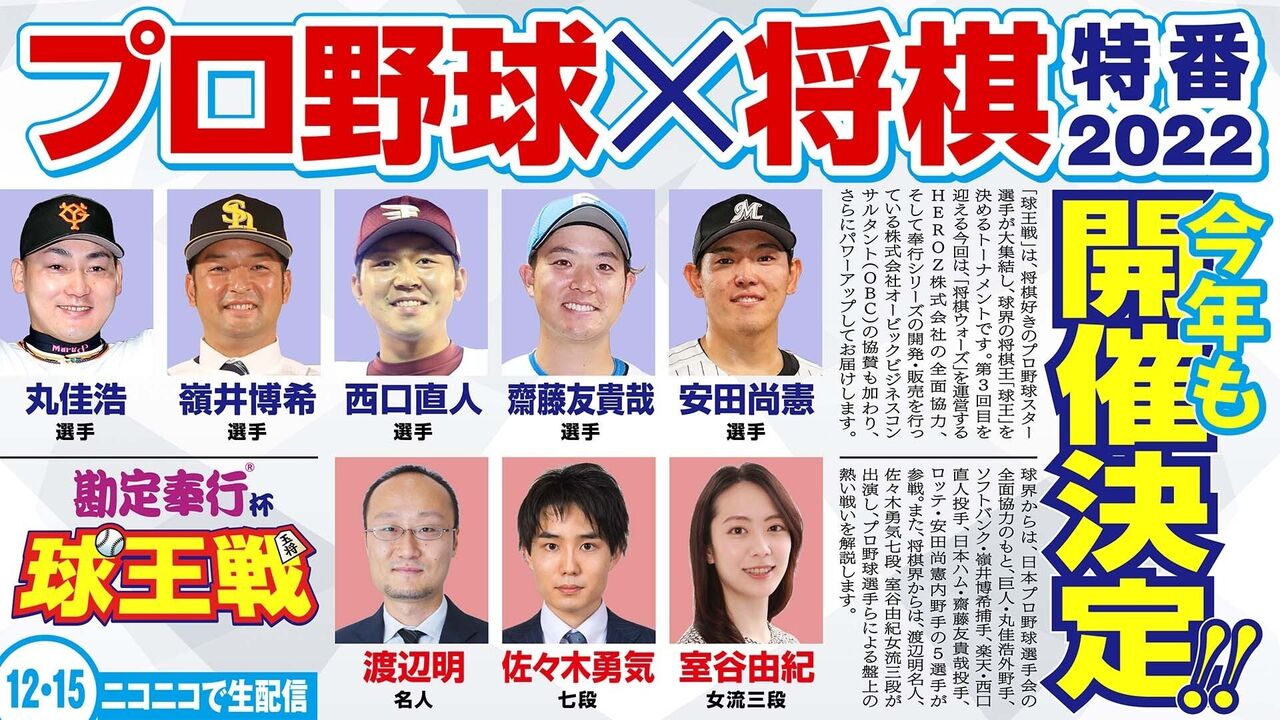 【悲報】ニコ生のプロ野球×将棋特番、2年連続優勝した平田参加せず