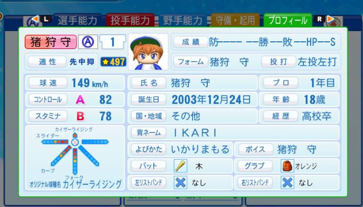 弾道3、ミートE、パワーA、走C、肩C、守C