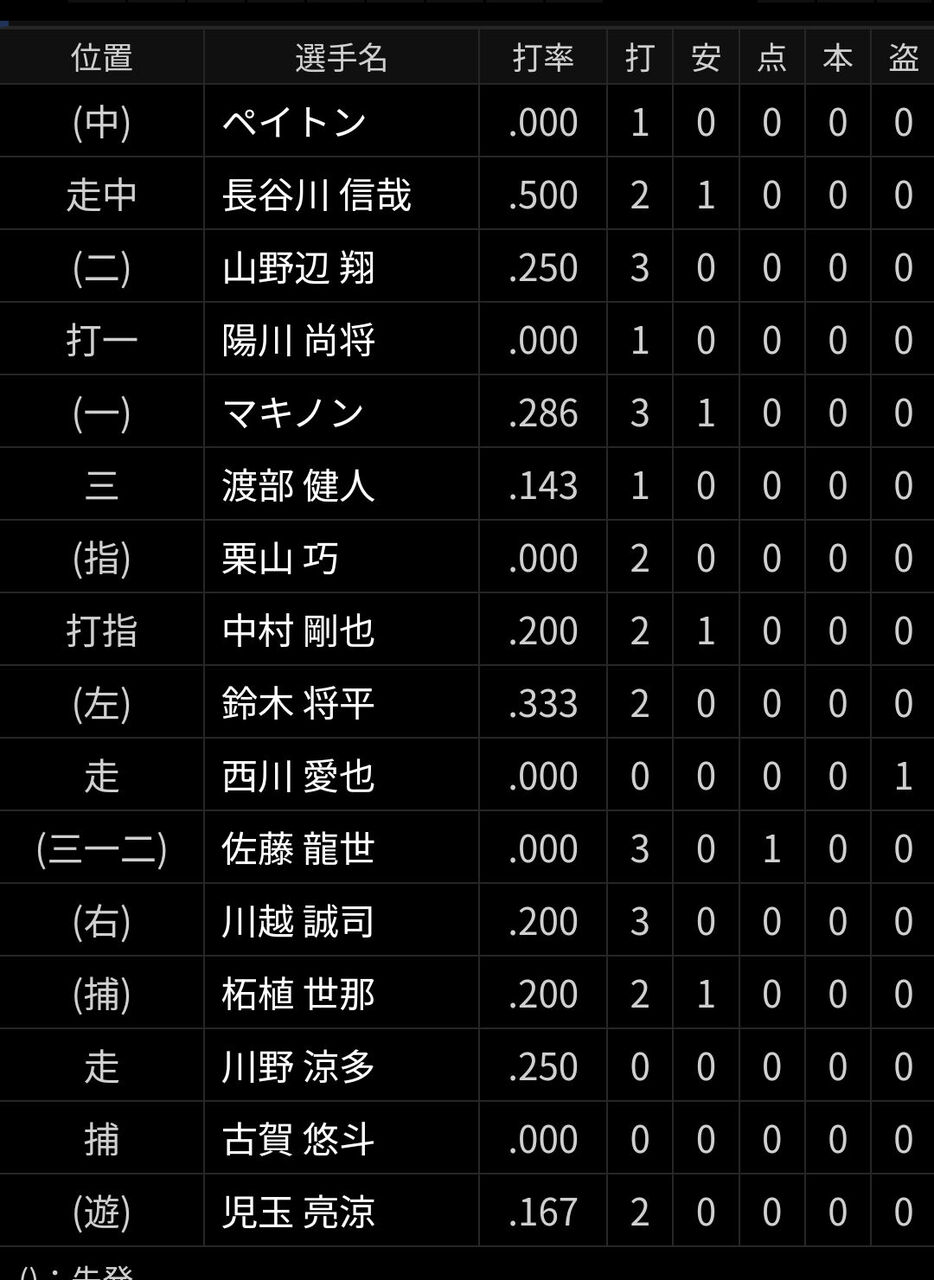 今年のS-ライオンズの打線WWWWW