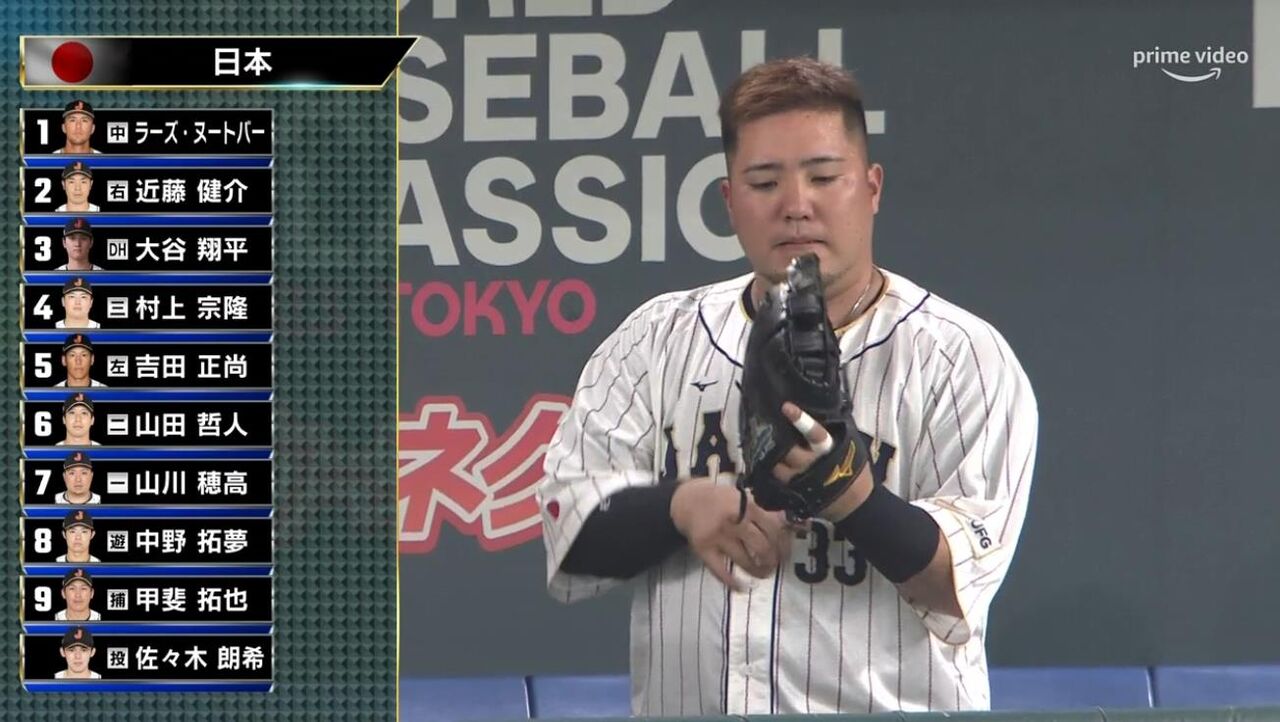 【試合実況】侍ジャパンスタメン 7(一)山川(2023.3.11)