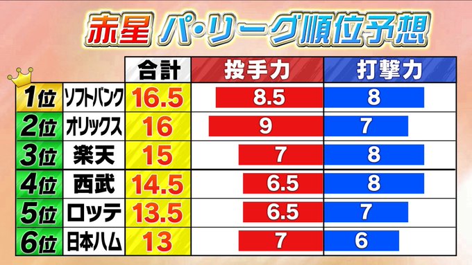 赤星のプロ野球順位予想wwww