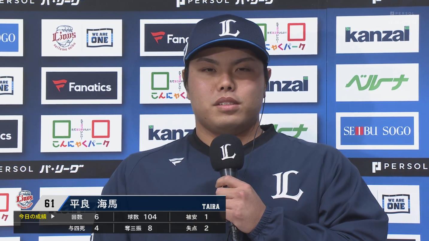 西武平良「6回2失点だとチームに貢献した感覚ない」