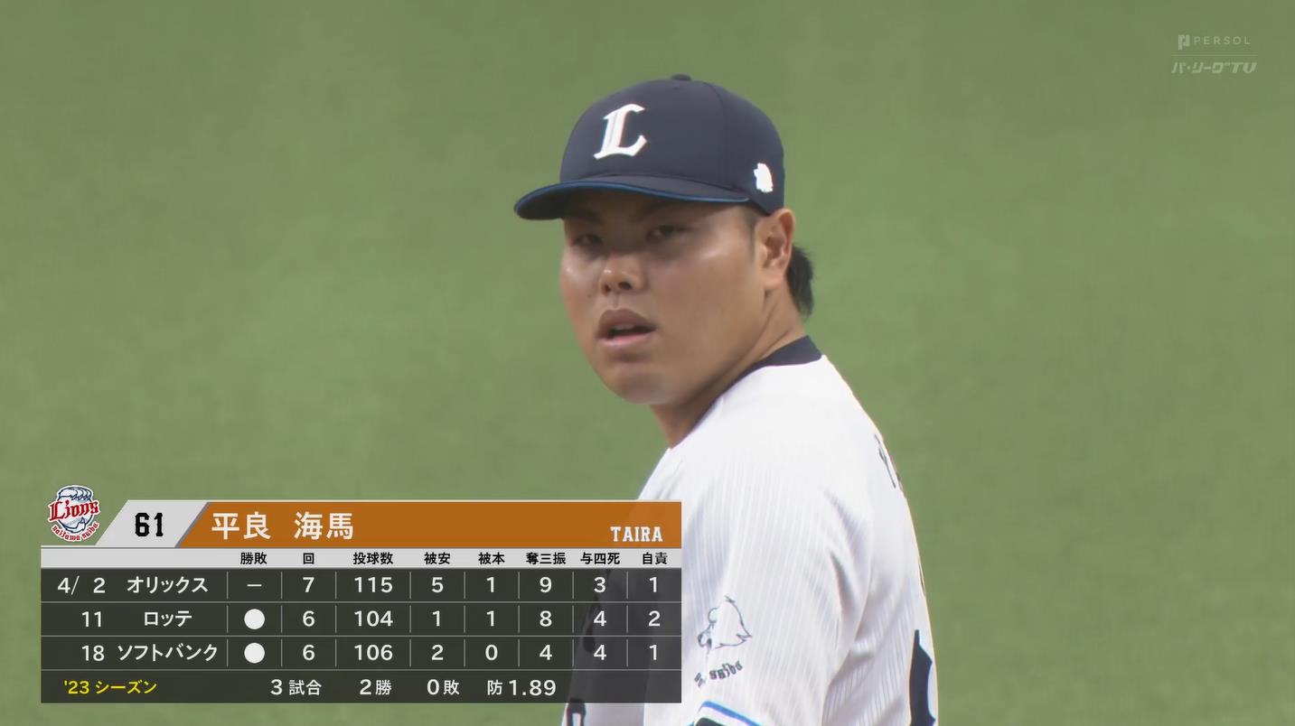 西武平良、粘りのピッチングで無傷の3連勝「僕は全然楽しくなかったんですけど…」
