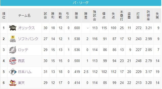 上から下まで5.5ゲーム差だからどこが勝ってもおかしくない