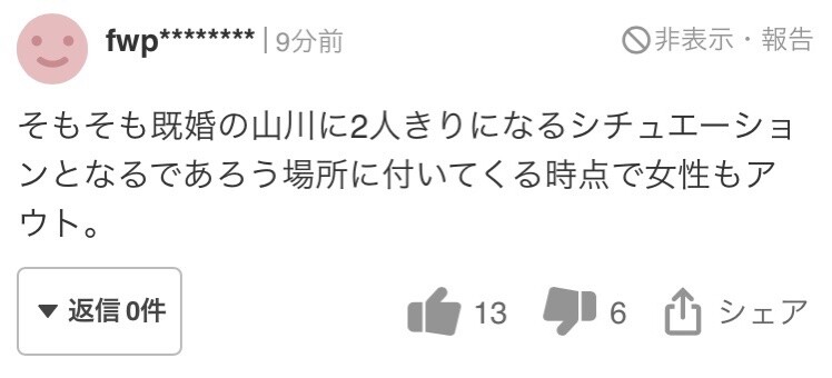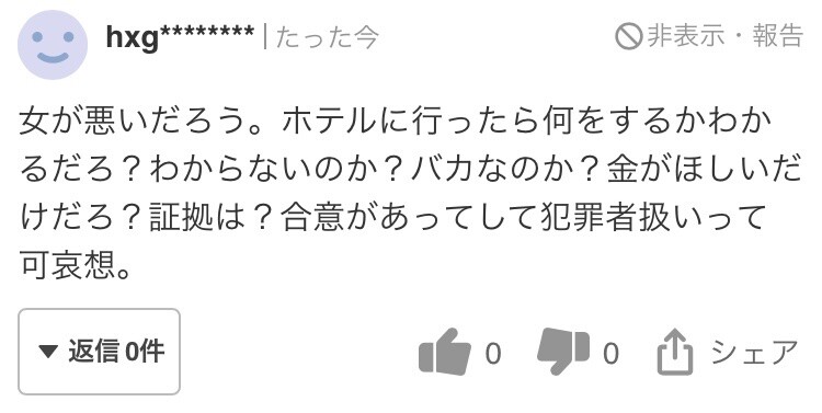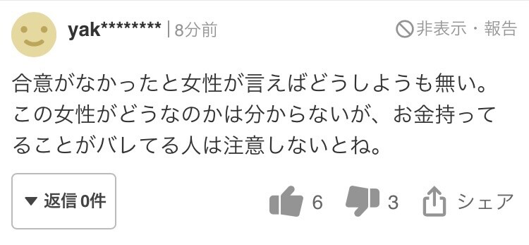 【悲報】 ヤフコメ爺、山川の被害者女性を批判「金が欲しいだけだろ?」