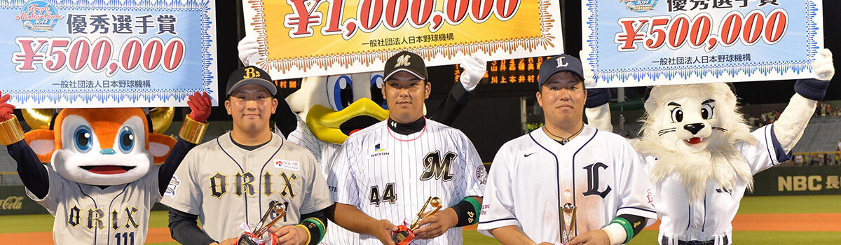 最優秀選手賞(MVP)は、2本塁打を含む3安打3打点の井上が獲得、優秀選手賞には、ともに本塁打を放った山川穂高(埼玉西武)と奥浪鏡(オリックス)が選ばれました。