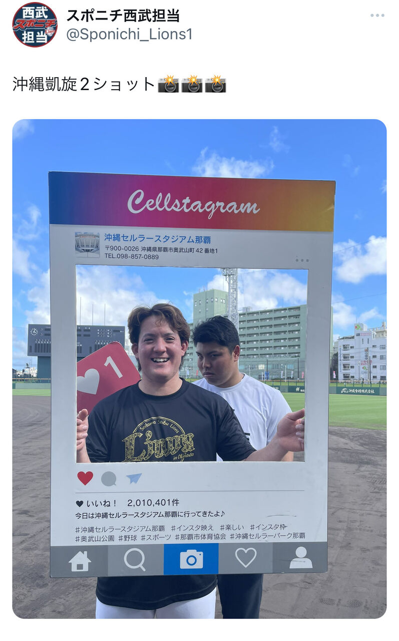 【悲報】西武の沖縄凱旋記念写真、何かが足りない