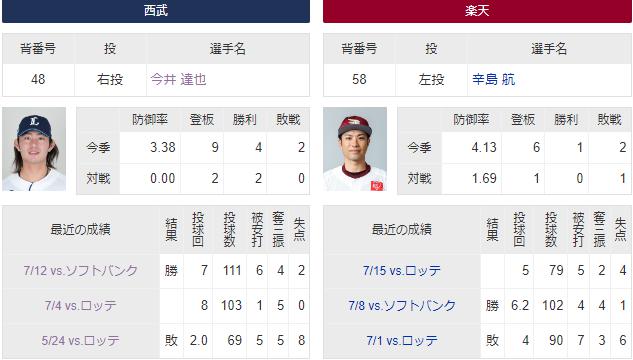 【試合実況】西武スタメン 先発:今井(2023.7.22)