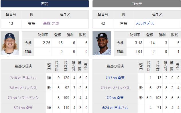 【試合実況】西武スタメン 先発:高橋光成(2023.7.25)