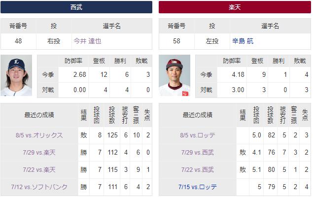 【試合実況】西武スタメン 先発:今井(2023.8.16)