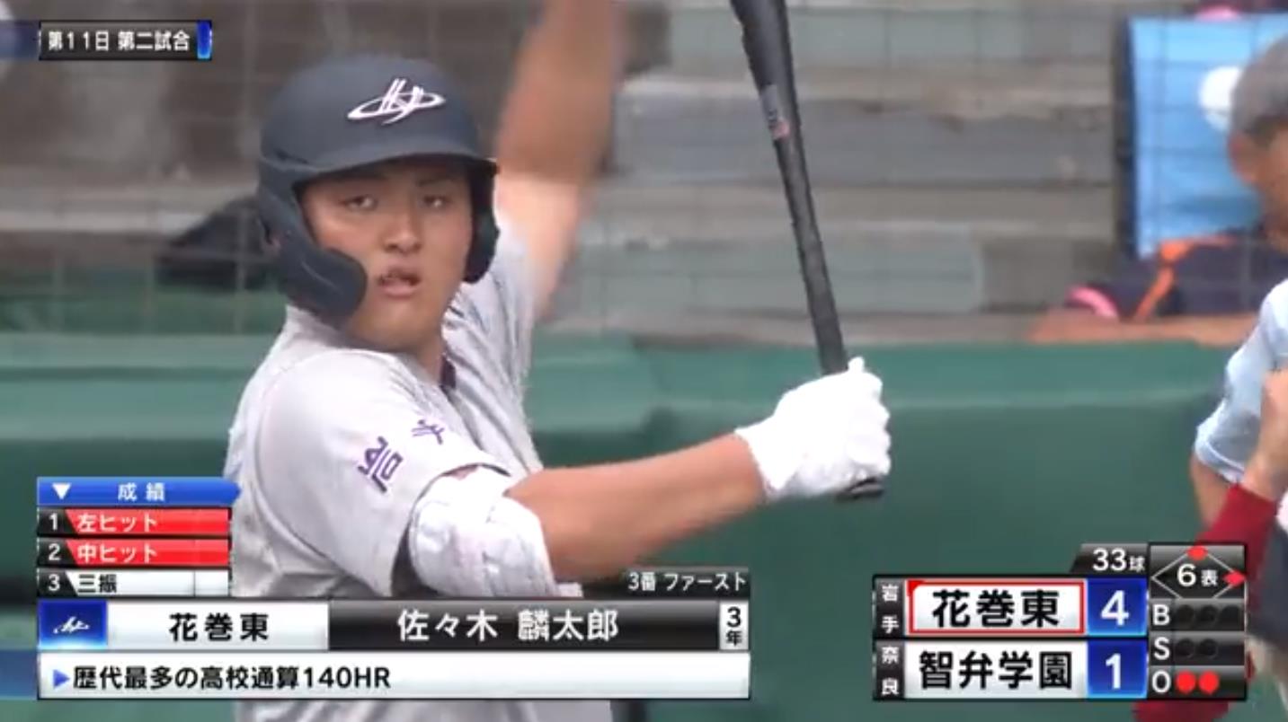佐々木麟太郎 .545(11-6) OPS1.091 全て単打