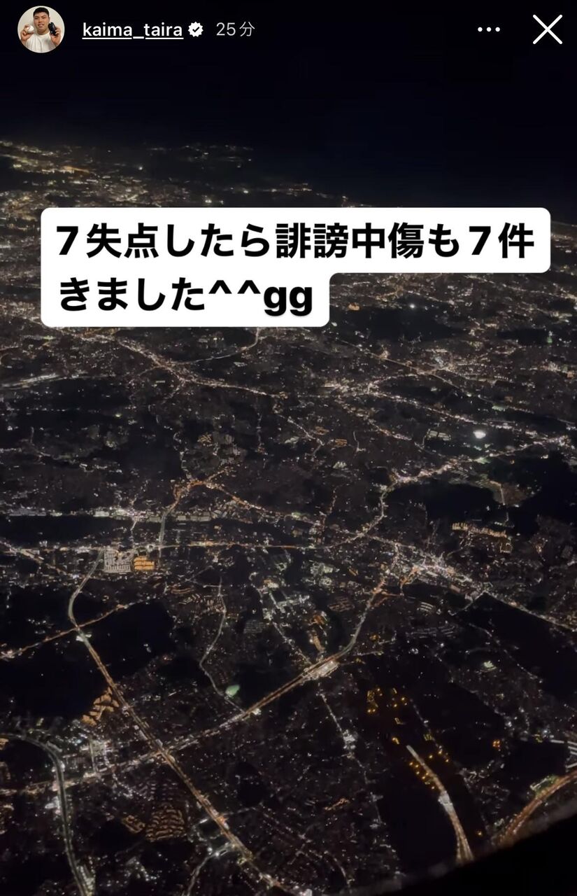 平良海馬「7失点したら誹謗中傷も7件きました^^gg」