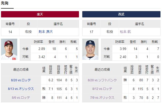 【試合実況】西武スタメン 先発:松本航(2023.8.29)