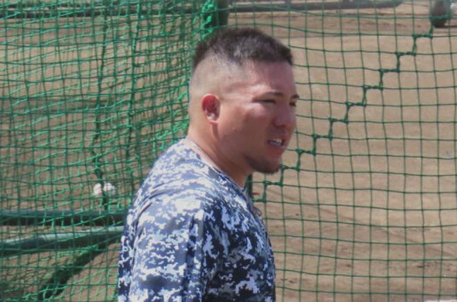 アップではチームメートと会話を交わしながら、体をほぐした。その後はキャッチボールを行い、相手役を務めた鬼崎3軍守備コーチから「良いボールだアグー」と声をかけられると、「ありがとうございます! 体仕上がってます!」と元気な掛け合いを見せた。