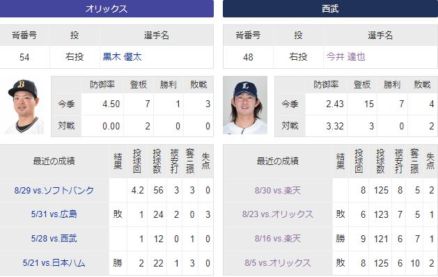 【試合実況】西武スタメン 先発:今井(2023.9.6)