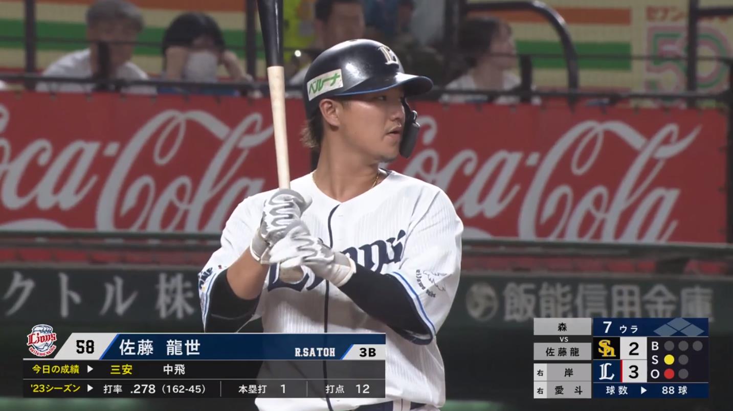 西武佐藤龍世(9月) 打率.405 出塁率.532 OPS.991