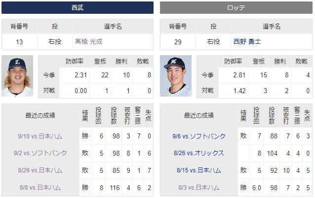 【試合実況】西武スタメン 先発:高橋光成(2023.9.18)