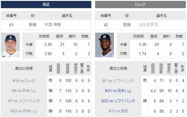 【試合実況】西武スタメン 先発:平良(2023.9.23)