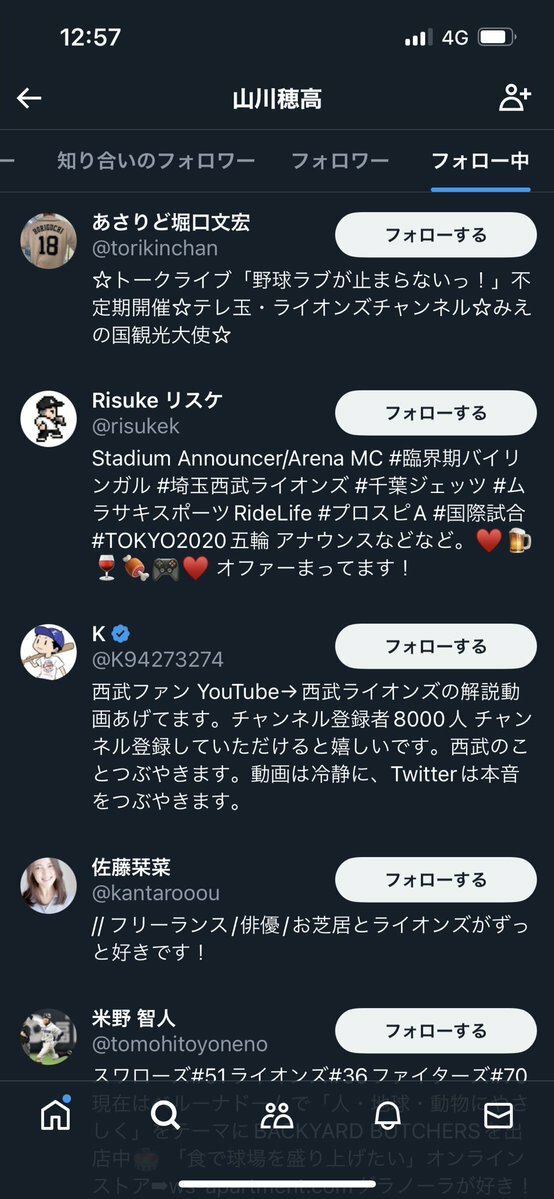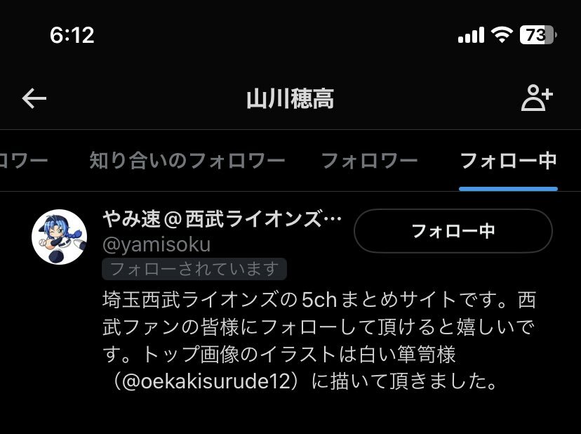 山川穂高、なぜか西武関連のアカウントをフォローしだす