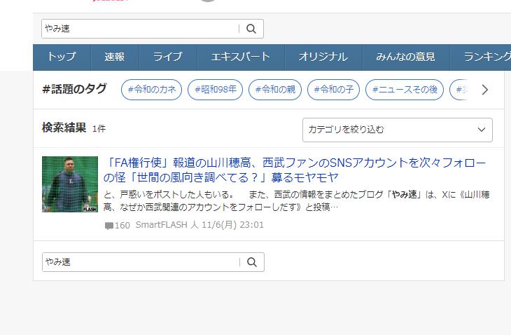 【悲報】某西武まとめサイト、Yahooニュースデビュー