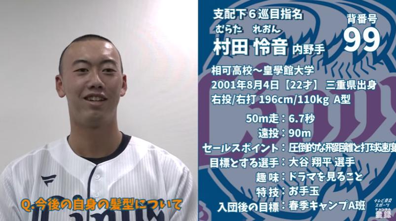 西武ドラ6村田怜音「髪の毛は必要ないんで」