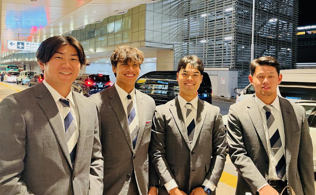 台湾での武者修行を終えた #青山美夏人 投手、#古川雄大 選手、#是澤涼輔 選手、#野村和輝 選手が帰国しました。