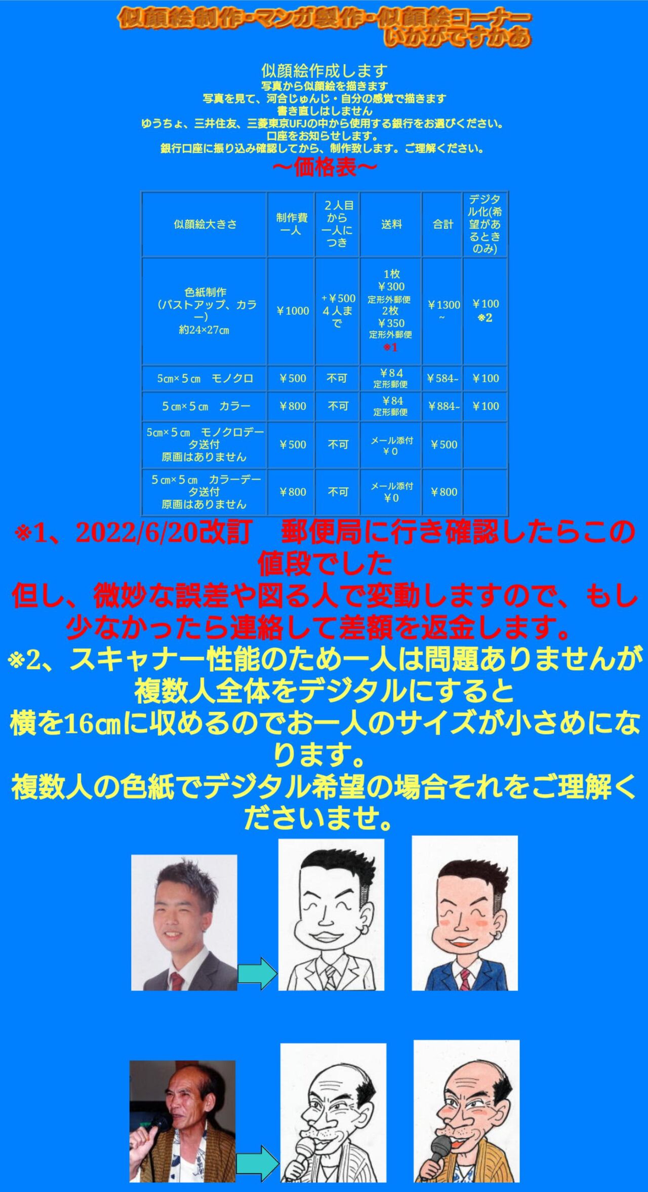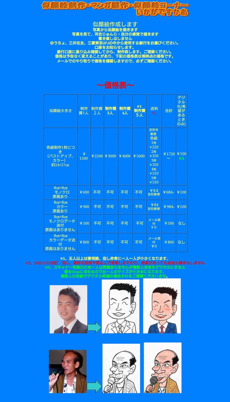 【悲報】河合じゅんじ先生、似顔絵制作を値上げしていた