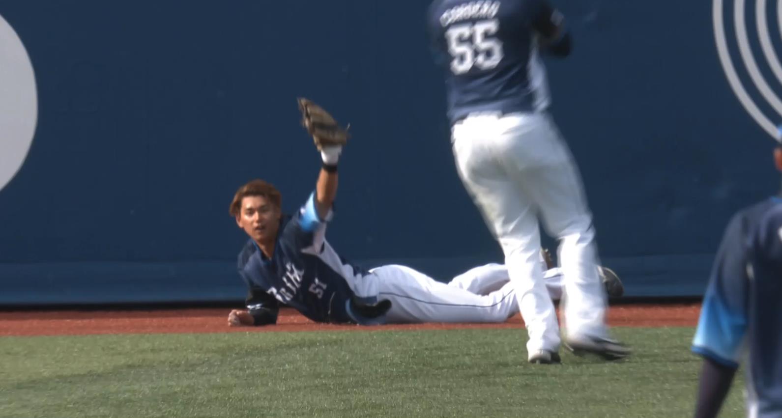 センター西川愛也、フェンス激突のファインプレー!