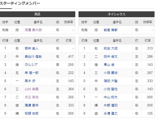 【試合実況】西武スタメン 先発:渡邉勇(2024.3.21)
