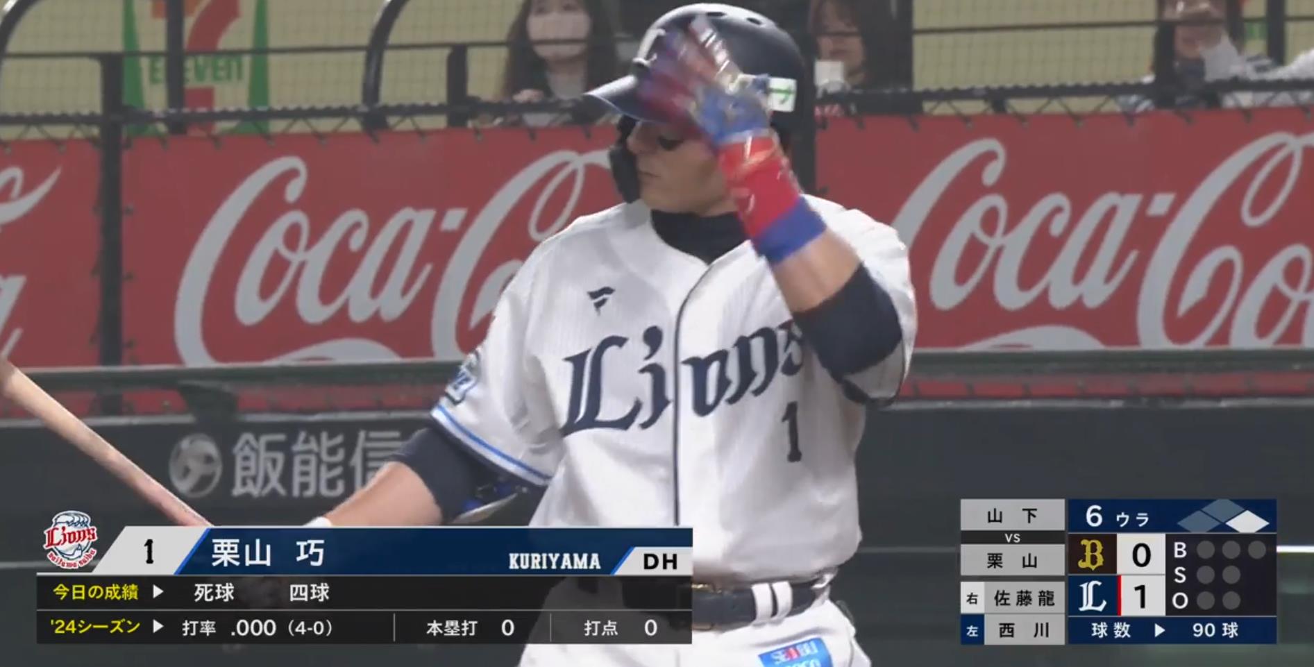 栗山巧 VS 山下舜平大、出塁率.875 OPS1.875