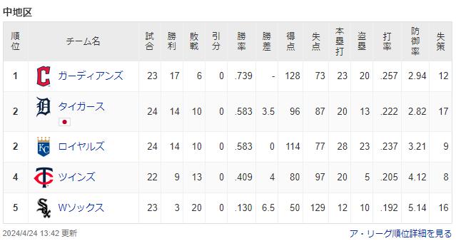 ホワイトソックス 3勝 20敗 勝率.130
